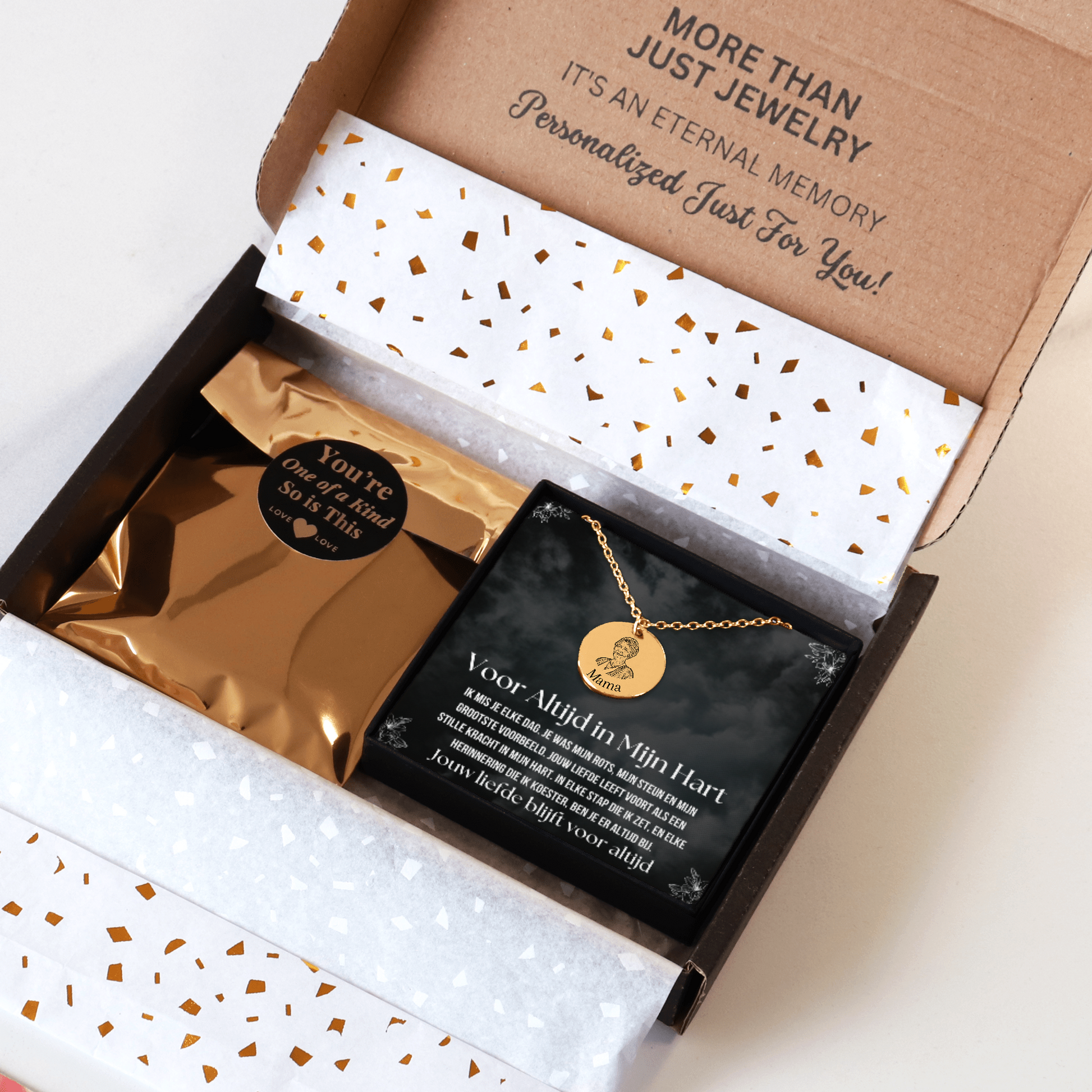 • Unieke Gravure: Laat de ketting graveren met een foto, naam of speciale boodschap die voor jou betekenisvol is.